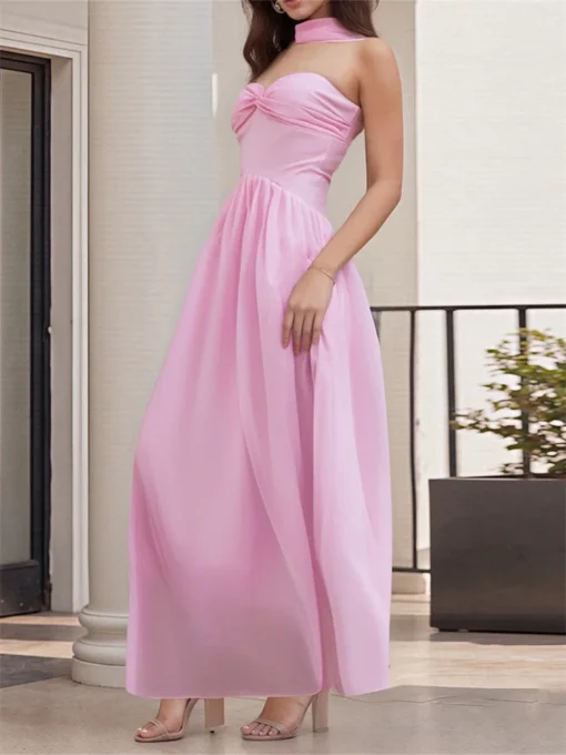 Summer Women Tube Top Dress Solid Color Strapless Sleeveless Backless Midi Dress Y2K Aesthetic Cocktail Party Sexy Dresses