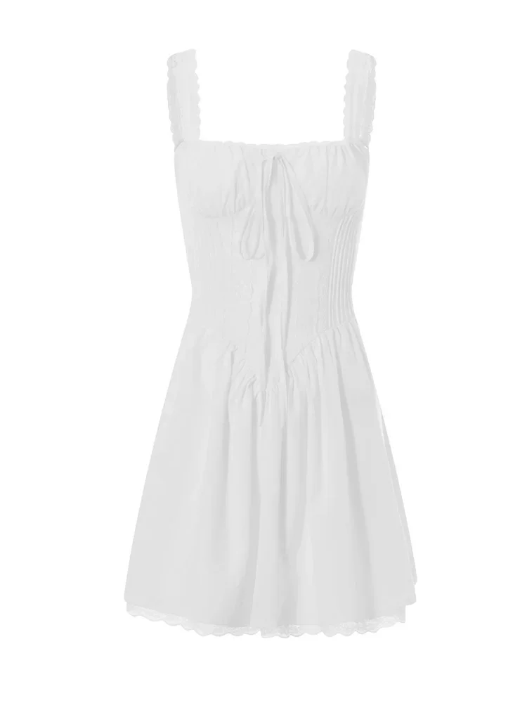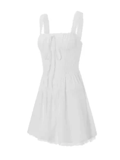 Womens Summer Flowy Dress Sleeveless Square Neck Tie-up Front Short Tank Dress Casual A-line Dress